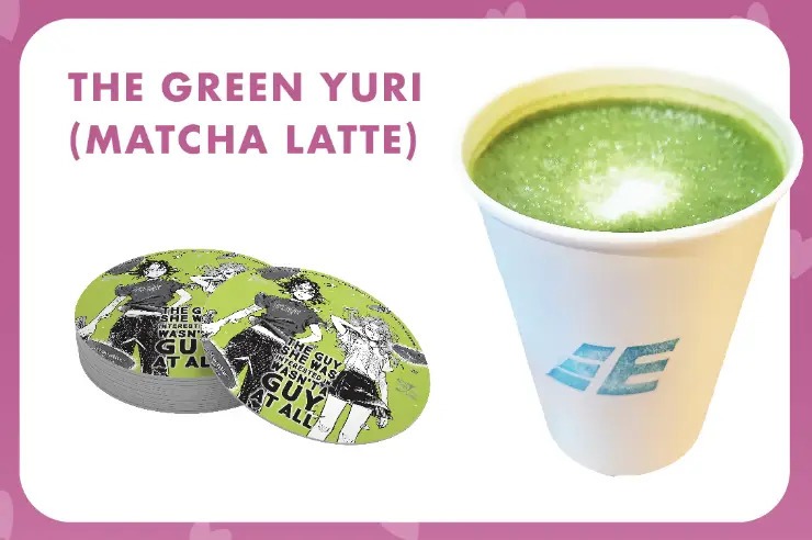 - The Green Yuri: 12 oz matcha latte that comes with a 3.7″ The Guy She was Interested in Wasn’t a Guy At All (aka the infamous green yuri) round coaster – $6.50