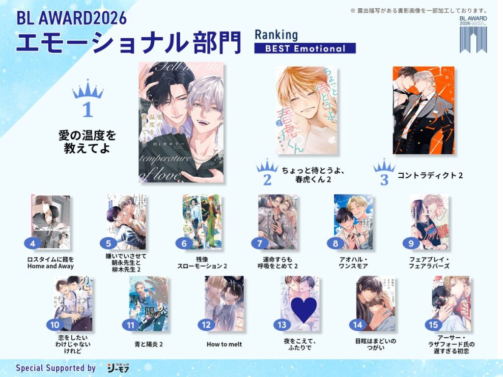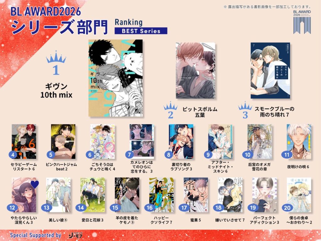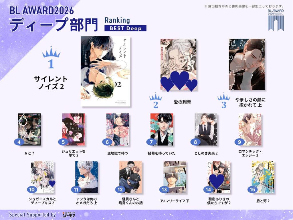 Every year, fans can vote for their favorite BL titles on Chil Chil, a BL information and review site based in Japan, in 10 different categories. The votes will be collected, and works with the most votes will be ranked accordingly within that category. These titles must be released in the year prior to the awards.
