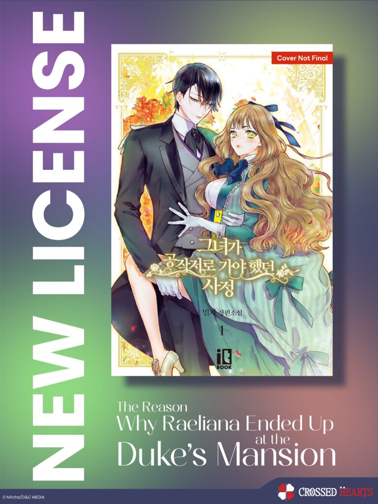 After licensing a few manhwa series, new publisher Crossed Hearts has revealed their first Korean novel license. The Reason Why Raeliana Ended Up at the Duke’s Mansion, written by Milcha. The first volume will release in spring 2026 with the cover unveiled a few weeks later.