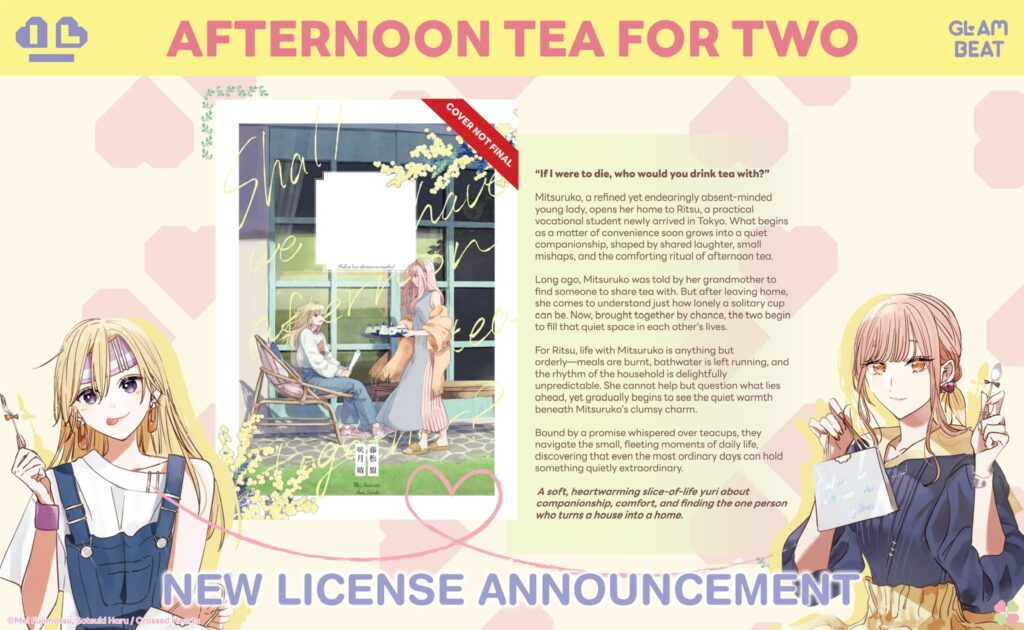 The indie publisher announced another license will be joining GLAM BEAT, the recently launched imprint that focuses on girls’ love stories. This marks the imprint’s third license and also marks the end of the first set of GLAM BEAT announcements. According to Crossed Hearts, they’ll have nine more licenses to announce this year.