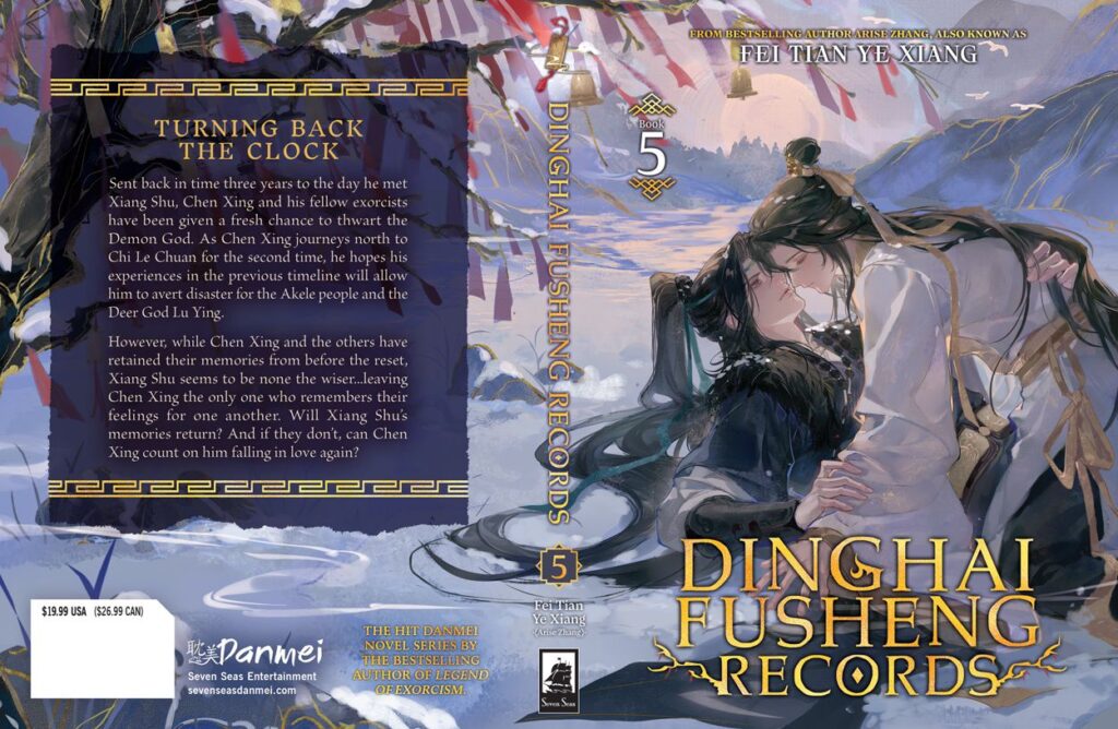 Seven Seas Entertainment unveiled the cover for Vol. 5 of Dinghai Fusheng Records where it features Chen Xing lying on top of Xiang Shu, his eyes closed as he presses his forehead against Xiang Shu’s. The two seemed to have fallen on the snowy ground. 苍顾行 illustrated the beautiful cover, with VIN providing the interior artwork. moon, Elestrea, and Zryuu worked on the translation for the series.