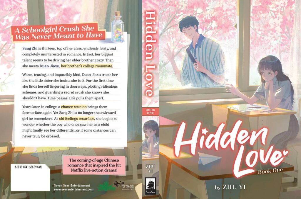 Seven Seas unveiled the cover for Zhi Yu’s Hidden Love, the coming-of-age romance about a school girl’s crush on her brother’s best friend. The cover was designed by MORNCOLOUR and depicts the softness of falling in love for the first time when you’re a teenager with Sang Zhi at her desk and awkwardly waving to Duan Jiaxu who offers a kind smile. Outside, spring is in full swing with cherry blossoms blooming.