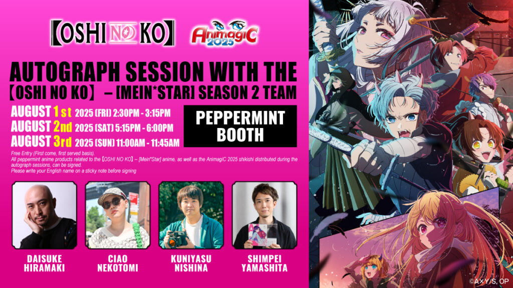 Hot on the heels of a Season 3 announcement, the creative team behind 【OSHI NO KO】 – 【MEIN★STAR】 Season 2 will host an extended panel exploring the making of Season 2. Fans can expect commentary, exclusive assets, and untold production stories.