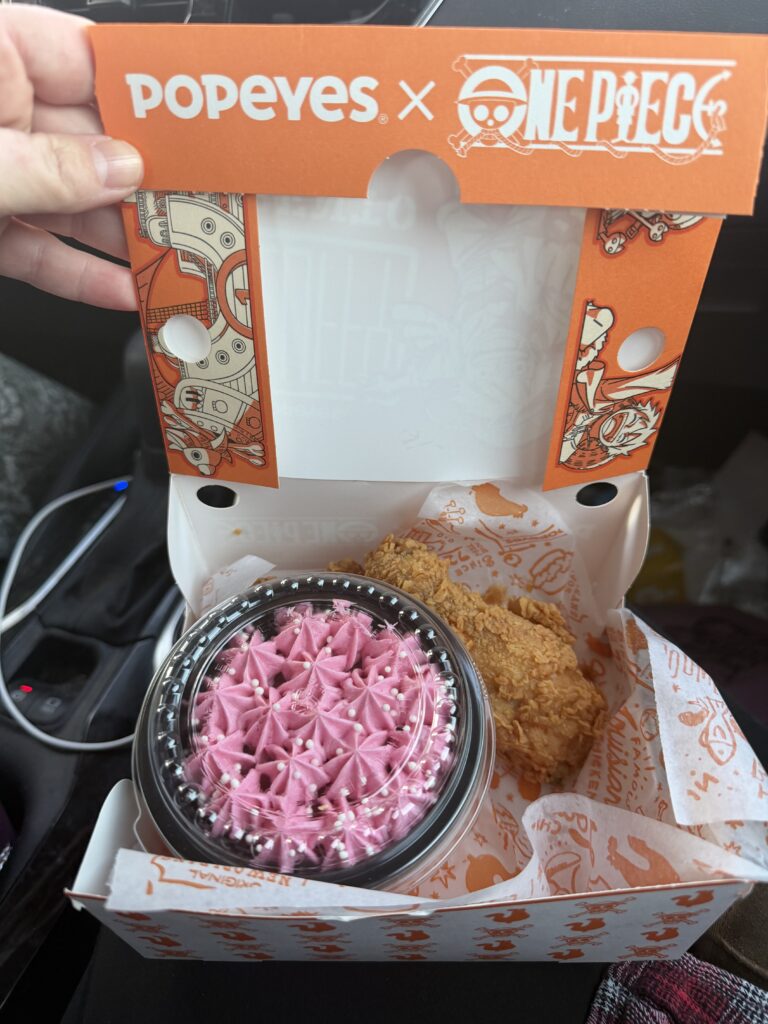 Nevertheless, for around $15, this was a solid meal with some fun One Piece trappings. While a special collectable cup or some unique chicken flavors would have been a nice addition, we were not disappointed by our One Piece x Popeyes collab experience.
