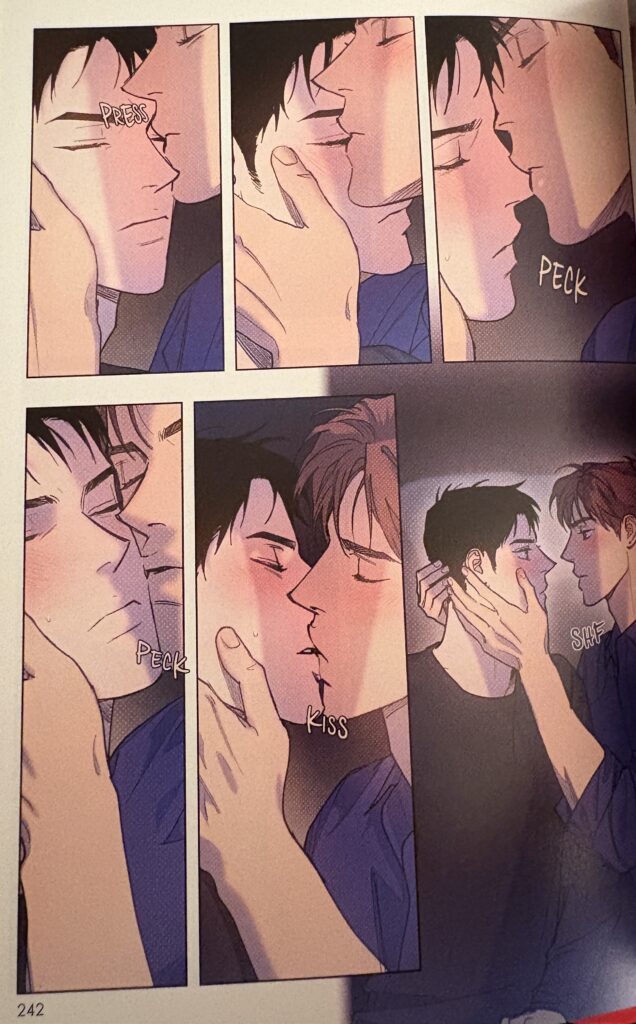 Vol. 4 is where Jaeyoung and Sangwoo’s relationship takes a step further, into a territory neither of them wants to think about. The two have sex for the first time. Then a second time. Then a third. And each time they fall into each other, something shifts in their dynamic, their desire for each other going beyond the physical.
