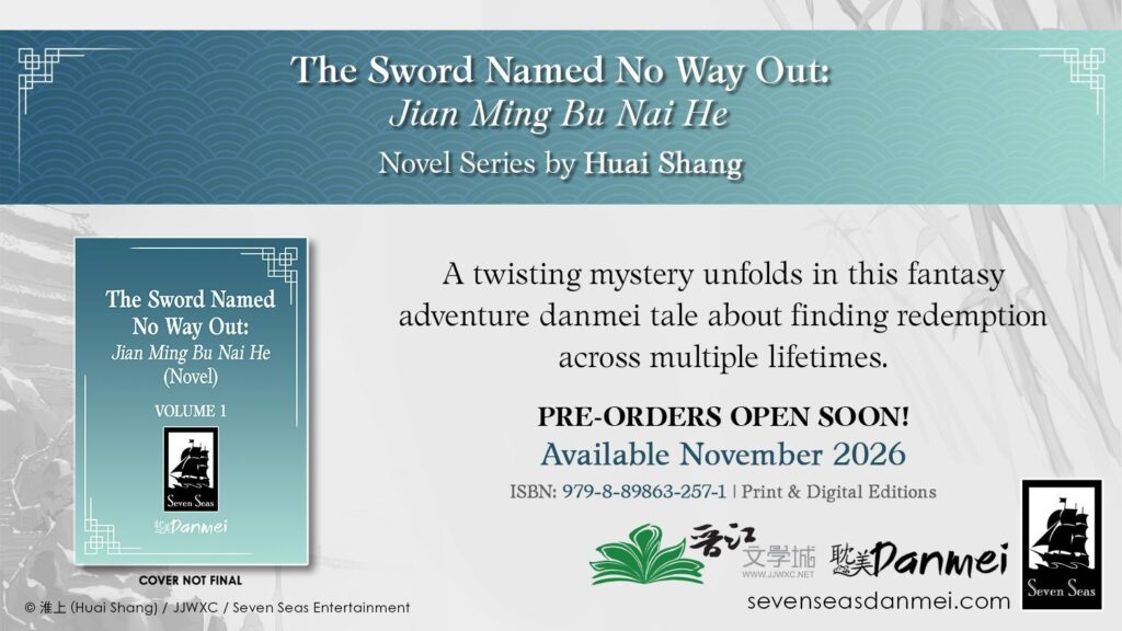 The publisher revealed that they had danmei licenses to announce for their weekly Wonderful Wednesday announcements. Aside from an audiobook adaptation of a popular danmei series, Seven Seas has also licensed one fantasy, one modern day series from one of their most beloved authors, an idol drama series, an omegaverse series, and another modern day danmei series with a funny twist.