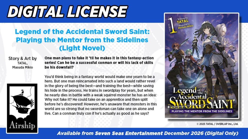 Vol. 1 of Legend of the Accidental Sword Saint: Playing the Mentor from the Sidelines releases in December 2026.