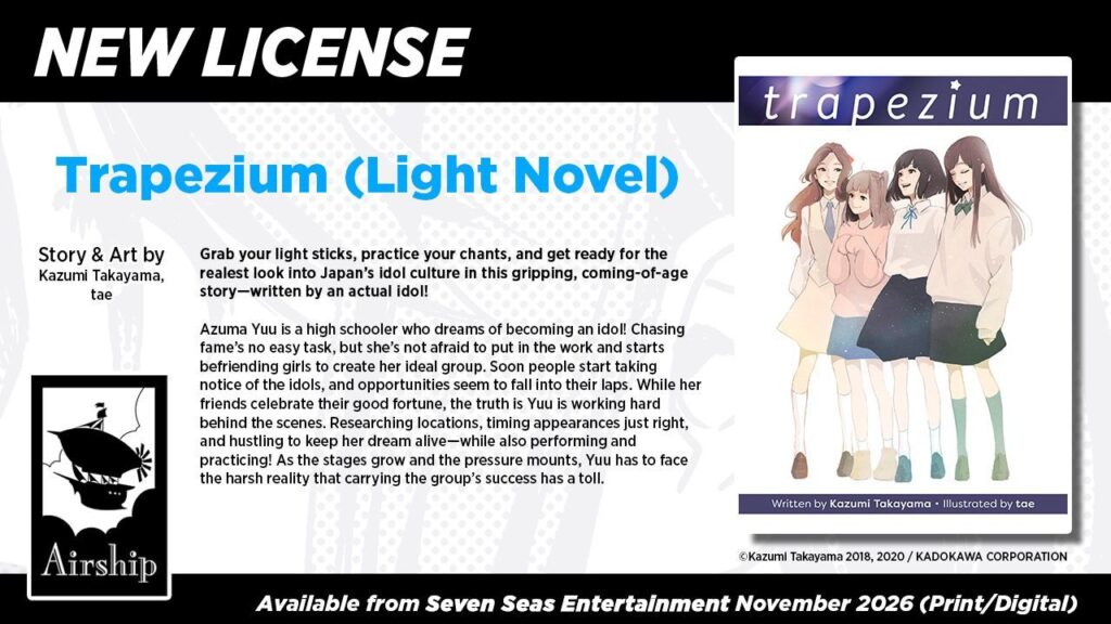 Written by an actual idol, Trapezium will be released in November 2026 and is priced at $15.99 USD / $20.99 CAD.