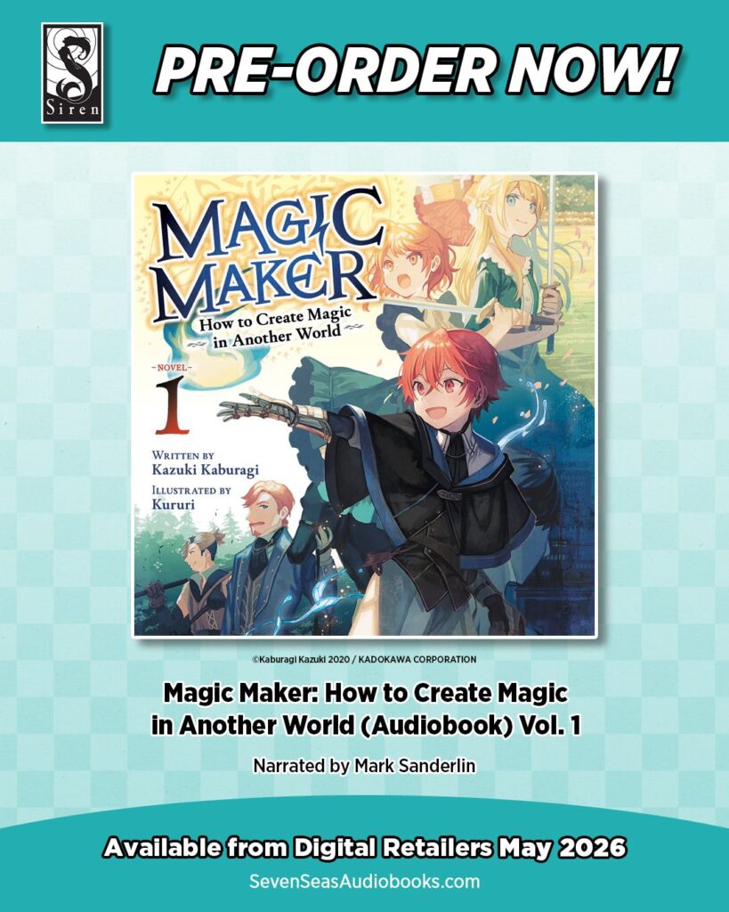 The first volume of Magic Maker: How to Create Magic in Another World (Audiobook) comes out on May 28.
