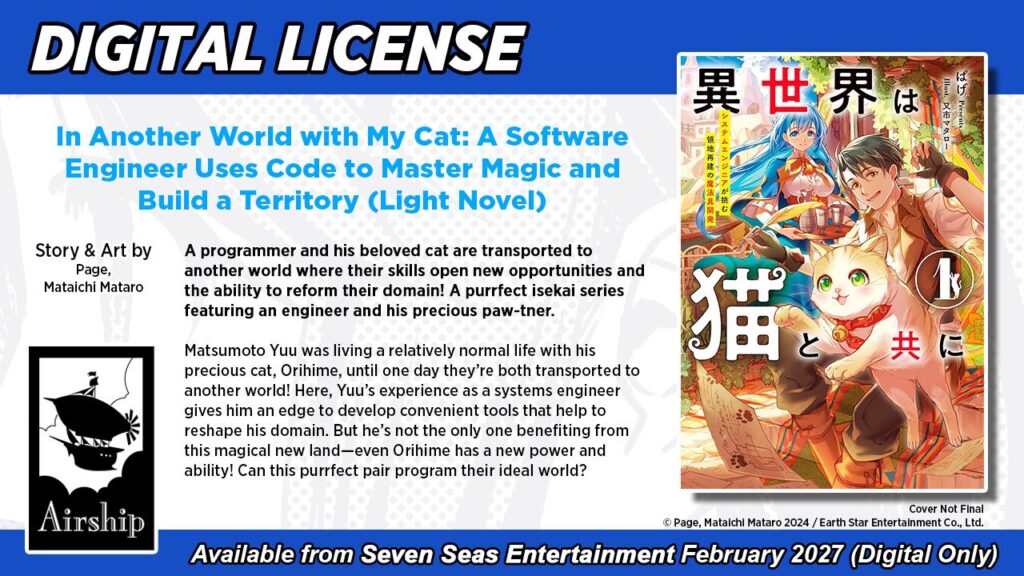 The publisher revealed a new slate of titles for its Wonderful Wednesday license announcements. Cat lovers will be delighted to see a light novel featuring everyone’s favorite feline and BL fans will rejoice at seeing a manga about two city boys going to the country side. Seven Seas licensed a total of seven titles which includes three light novels and four manga.