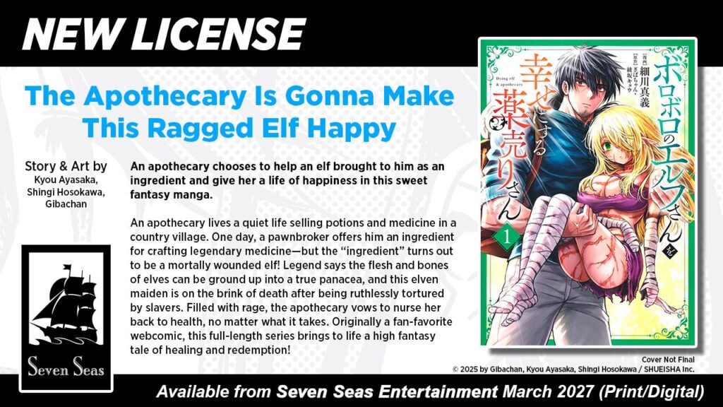 An apothecary lives a quiet life selling potions and medicine in a country village, until one day he’s approached with a devil’s bargain. A pawnbroker offers him the perfect ingredient for crafting legendary medicine—but the “ingredient” turns out to be a mortally wounded elf! Legend has it the flesh and bones of elves can be ground up into a true panacea, and this elven maiden is on the brink of death after being ruthlessly tortured by slavers. Filled with rage, the apothecary vows to nurse her back to health and happiness, no matter what it takes.