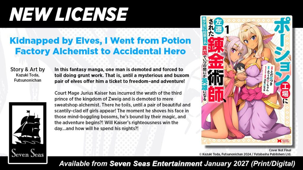 Vol. 1 of Kidnapped by Elves, I Went from Potion Factory Alchemist to Accidental Hero releases in January 2027.