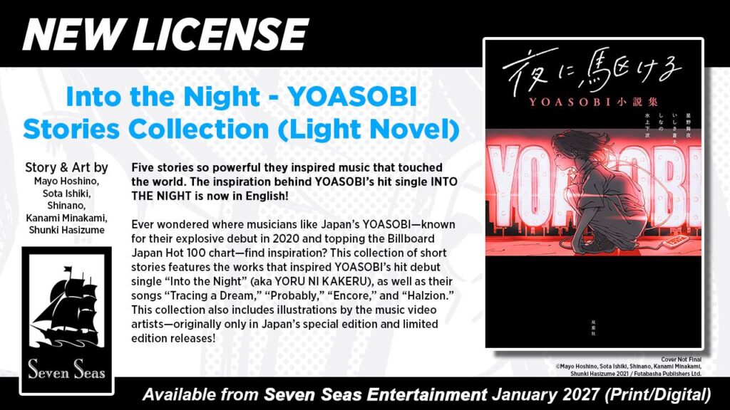 The stories behind the songs! Ever wondered where trending musicians, like Japan’s YOASOBI—known for their explosive debut in 2020 and topping the Billboard Japan Hot 100 chart—find inspiration? This collection of short stories features the works that directly inspired YOASOBI’s hit debut single “Into the Night” (aka Yoru ni Kakeru), as well as their other top songs, including “Tracing a Dream,” “Probably,” “Encore,” and “Halzion.”