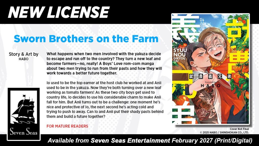 Seven Seas is back with a farm boy BL and a meowtastic light novel.