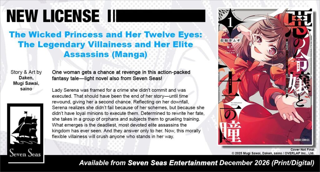 The Wicked Princess and Her Twelve Eyes: The Legendary Villainess and Her Elite Assassins will release in December 2026 and is priced at $13.99 USD / $17.99 CAD.