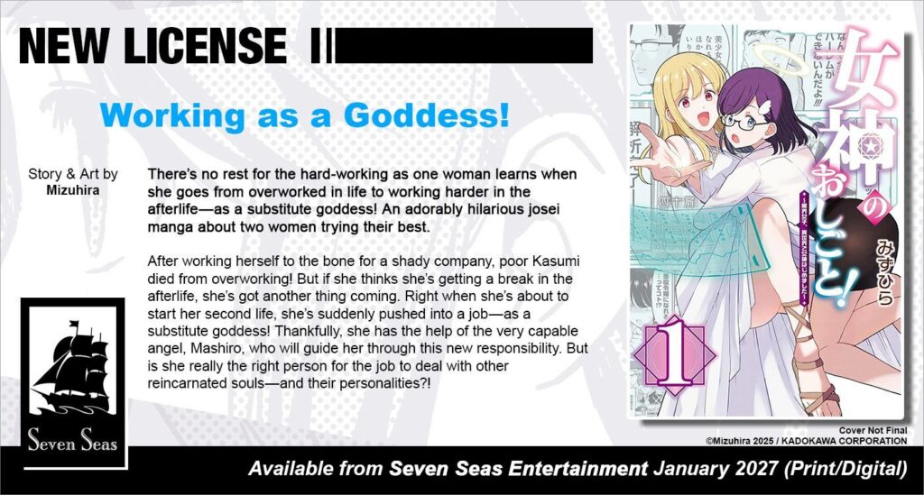 Working as a Goddess! will release in January 2027 and is priced at $13.99 USD / $17.99 CAD.