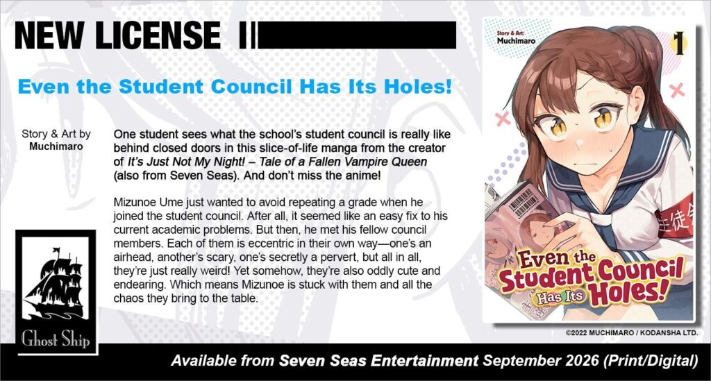 Even the Student Council Has Its Holes! will release in September 2026 and is priced at $13.99 USD / $17.99 CAD.