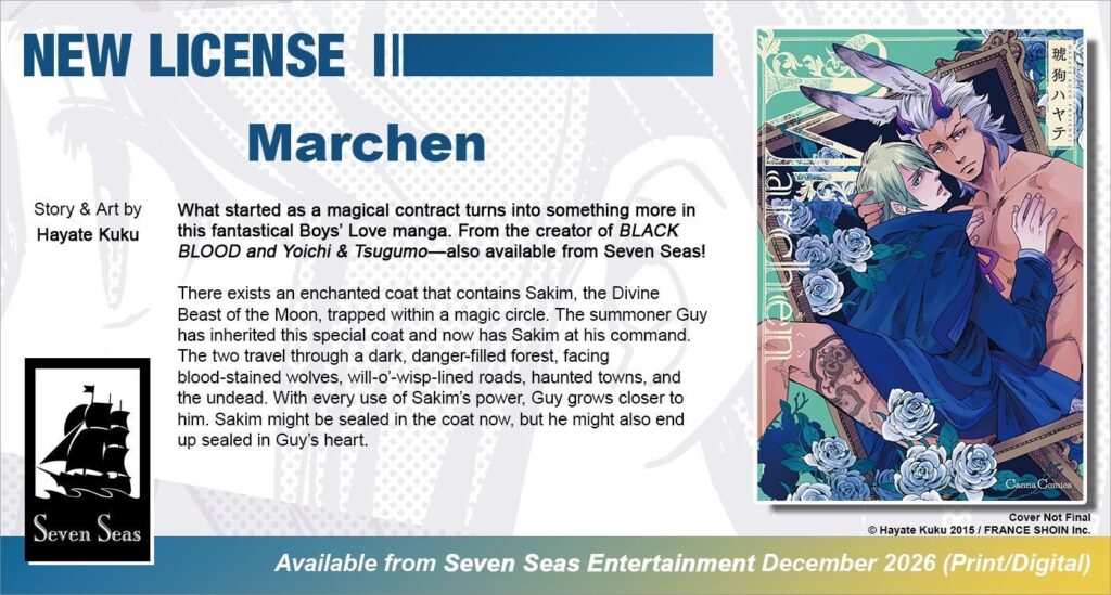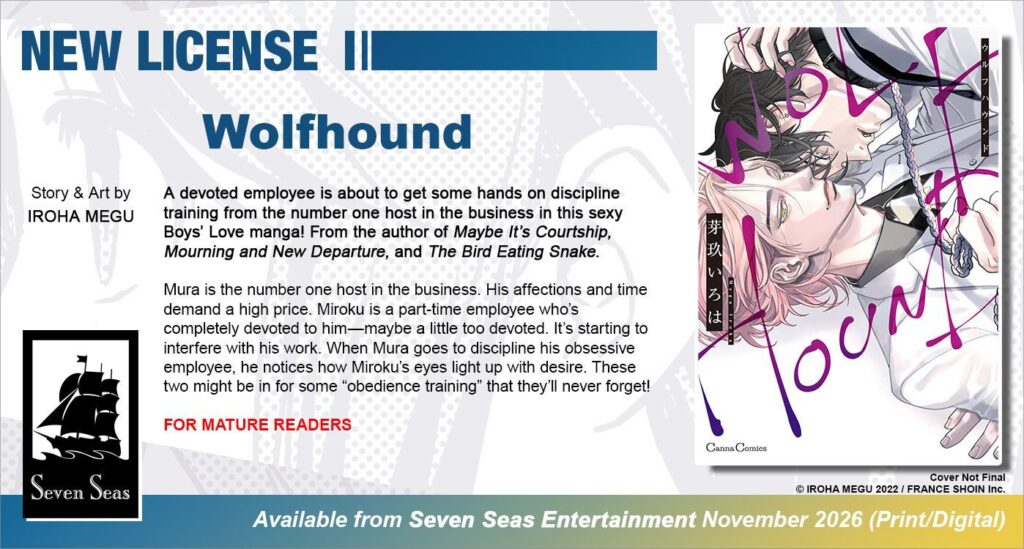 At Citrus Con, the virtual 18+ con for BL and queer media, Seven Seas announced three new BL manga licenses. Hayate Kuku will have two more series translated by the publisher as Seven Seas had already licensed BLACK BLOOD and Yoichi & Tsugumo. A spicy BL story, featuring a host and a part-time employee, will also make its English language debut. Unfortunately, the announcements were slightly overshadowed by the subsequent news of Media Do’s acquisition of Seven Seas.