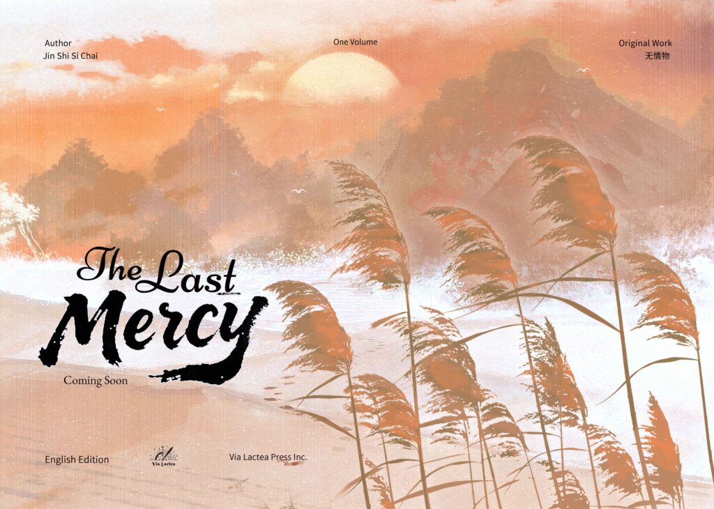 The indie publisher revealed that it had licensed The Last Mercy, a single volume danmei written by Jin Shi Si Chai. Described as a historical wuxia story that features the popular trope of enemies to lovers. Jin Shi Si Chai has also written In the Dark (previously published by the now closed Peach Flower House).