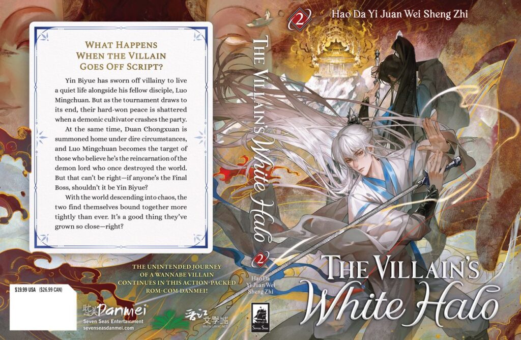 Seven Seas dropped the second volume cover of The Villain’s White Halo. Unlike the first volume where fans could see both protagonists’ faces, artist Yang Huoxiang showed Yin Biyue in front, holding his sword with a determined light in his eyes while Luo Mingchuan has his back to Yin Biyue as he faces off against whatever threats are on the other side. In the background is a grand temple awash in golden light. Alongside the cover, Yang will also provide the interior artwork. Suika and Divetus handled the translation.